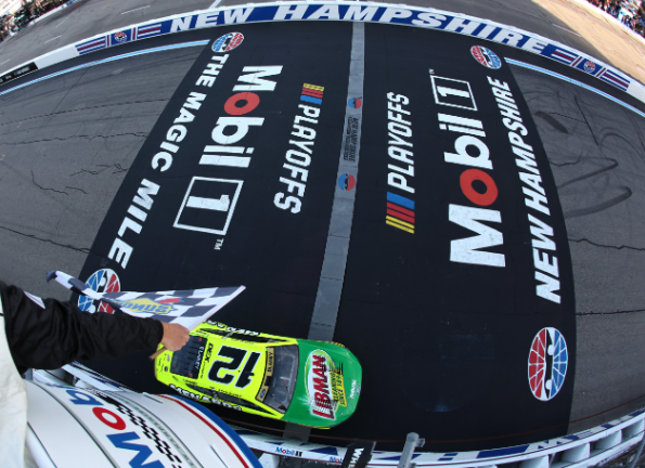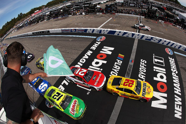 Team Penske’s Joey Logano started the Mobil 1 301 from the pole position, with teammate Ryan Blaney in P2 and Wood Brothers Racing’s Josh Berry in P3. On lap 53, Blaney took the lead and maintained it through the end of the stage, crossing the line just 0.264 seconds ahead of Logano for the Stage 1 win.
