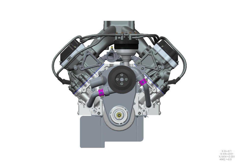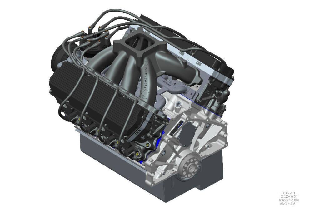 The RY45 parts are designed and developed by Roush Yates Engines in Mooresville, NC. A357-T6 Aluminum is used for the block casting and provides superior mechanical properties. The RY45 has an improved cooling system and its simplified engine assembly process lowers overall complexity.